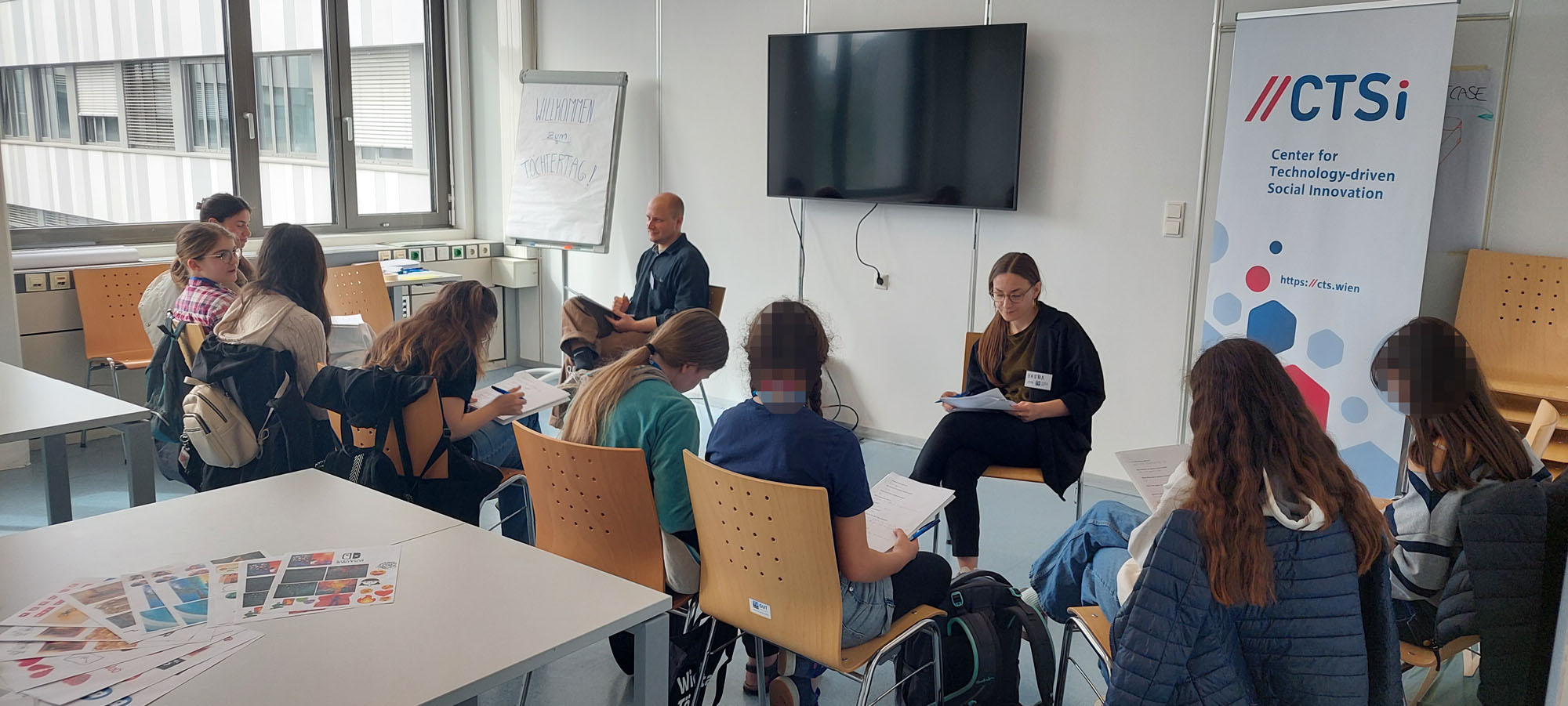Am 23. April 2026 gestaltete das Center for Technology‑driven Social Innovation (CTSi) im Rahmen des Töchtertags 2026 der TU Wien einen interaktiven Workshop für Mädchen im Alter von 13 bis 14 Jahren. Ziel des Workshops war es, Jugendliche altersgerecht an zentrale Fragen rund um digitale Technologien heranzuführen und sie dabei zu unterstützen, ihre Rolle in digitalen Räumen bewusst zu reflektieren.
